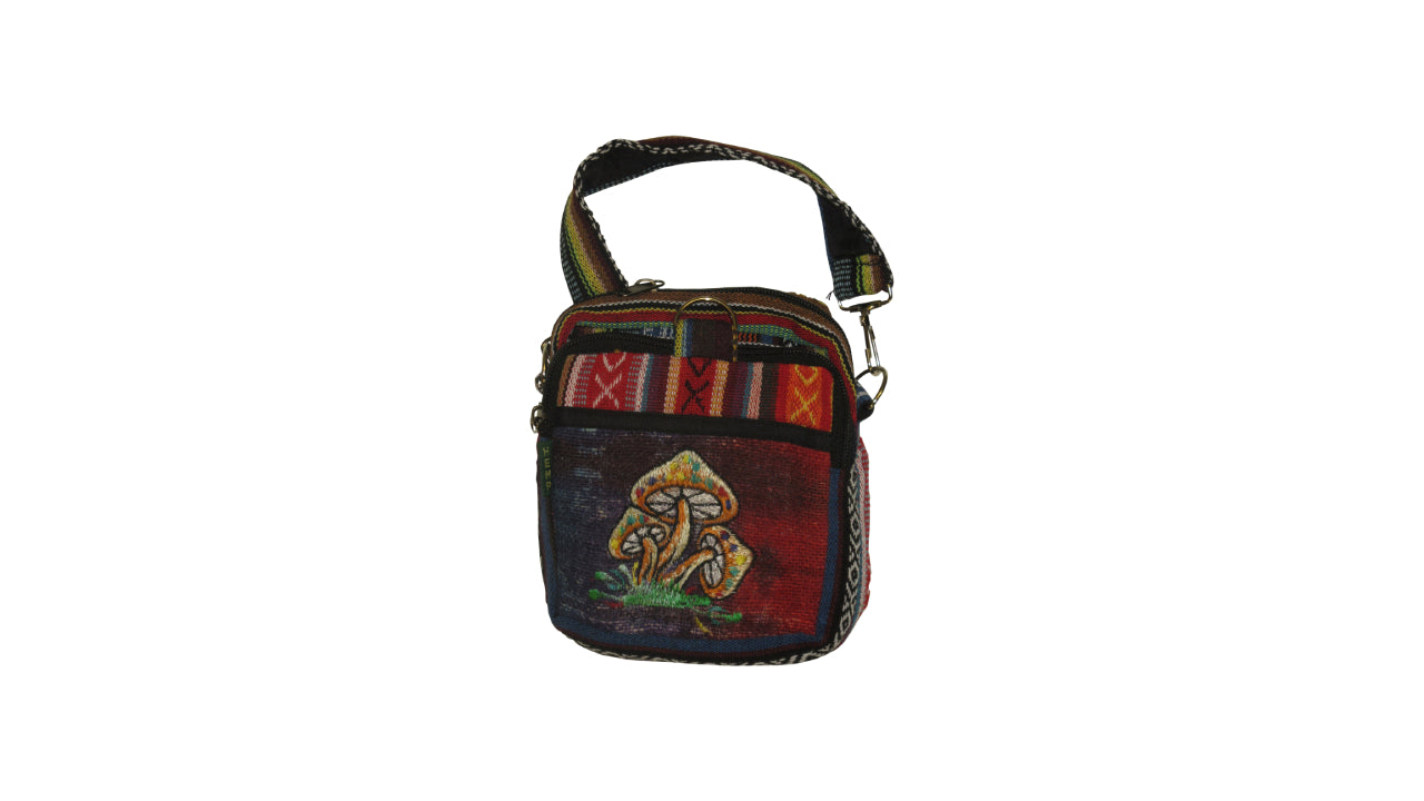 Women's Ladies Hemp Embroidered Aztec Print Mushroom Small Crossbody Bag Front Zip Detail P2