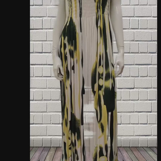 Embrace the unique and elegant style of this maxi dress. The abstract print and cowl neckline add a touch of bohemian flair, while the strapless, sleeveless design make it perfect for spring and summer occasions. This dress is made from high-quality rayon fabric, ensuring that it is comfortable and machine washable. The dress also features pockets and a free-size design, making it a perfect addition to any wardrobe. Whether you're going out for a night on the town or simply enjoying a casual day out, this dress is sure to impress.