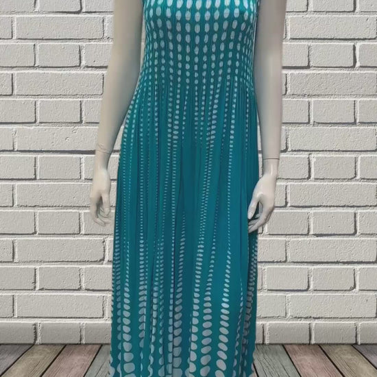 Make a statement with this bold and beautiful maxi dress. The dress features an abstract Tie Dye pattern in vibrant shades, perfect for any occasion. The dress has a Sleeveless design with a Cowl Neckline and Strappy Sleeves, giving it a sexy and bohemian vibe. At 53 inches long, the dress falls elegantly to the floor and is made from lightweight and breathable Rayon fabric. The dress is machine washable and easy to care for. The dress size is Up to UK Size 22, with a free size design that is perfect for plus-size women. This is a must-have for any fashion-conscious woman looking to add a touch of Aztec or Hippie chic to their wardrobe.