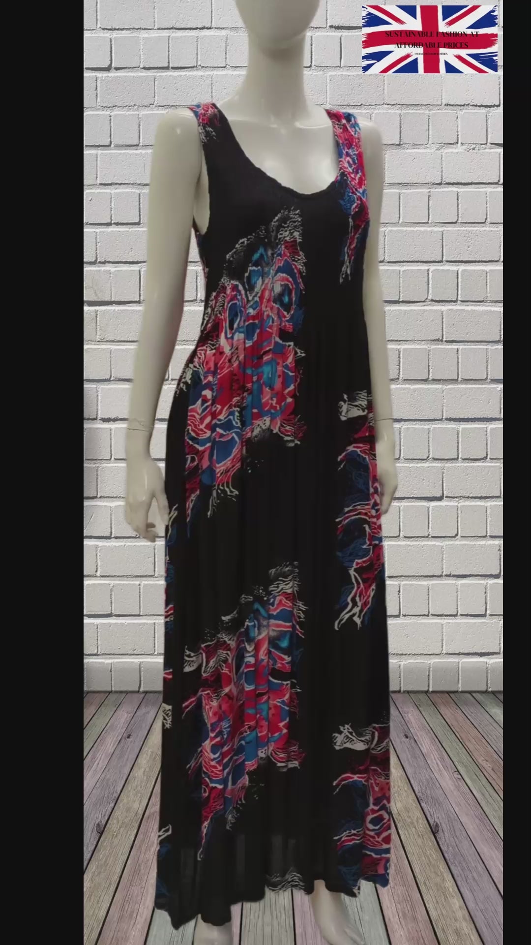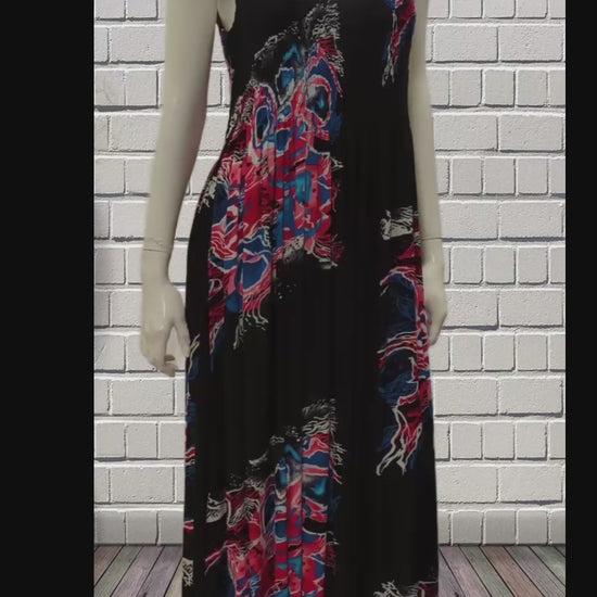 Womens Ladies Plus Size Curve Handmade Boho Abstract Print Maxi Elasticated Sleeveless Dress Free Size Up To UK Size 22 P3