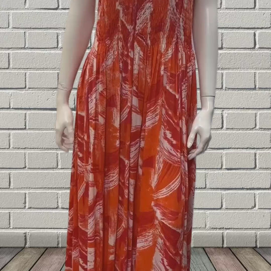 Womens Ladies Plus Size Curve Handmade Boho Abstract Print Maxi Elasticated Sleeveless Dress Free Size Up To UK Size 22 P28