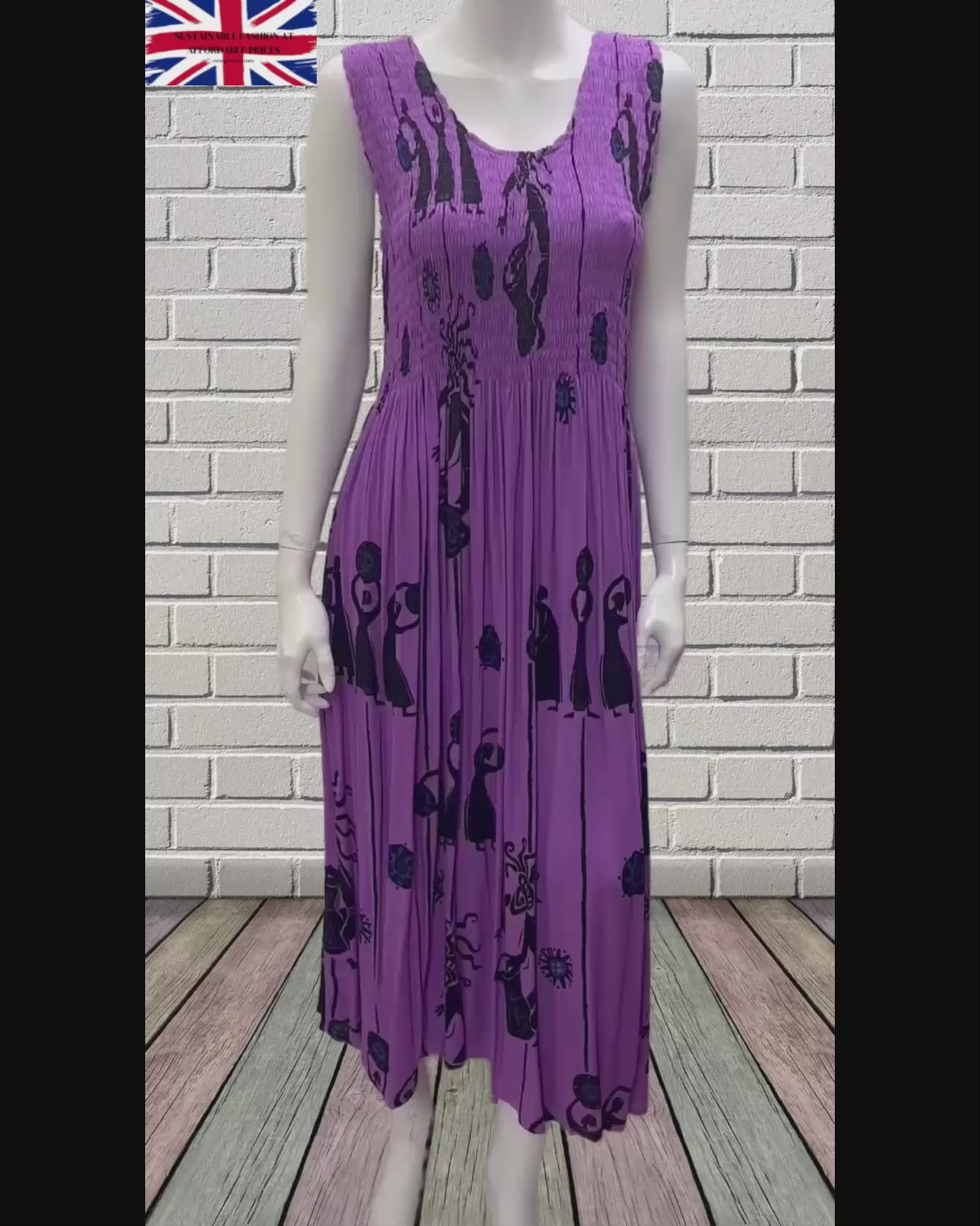 Womens Ladies Plus Size Curve Handmade Boho Abstract Print Maxi Elasticated Sleeveless Dress Free Size Up To UK Size 22 P39