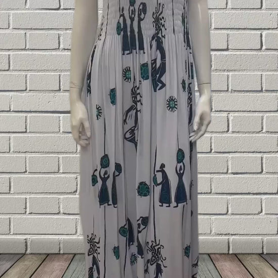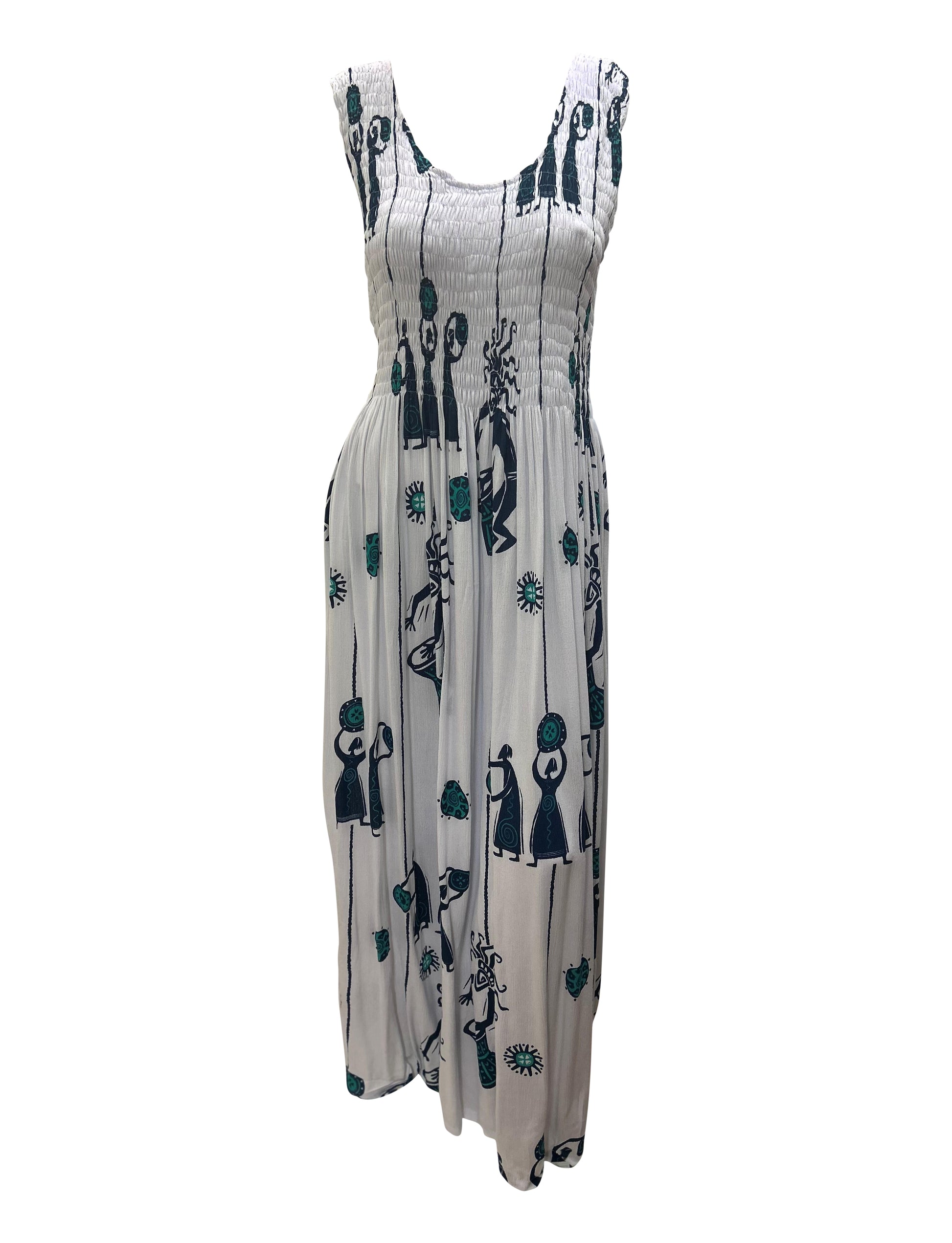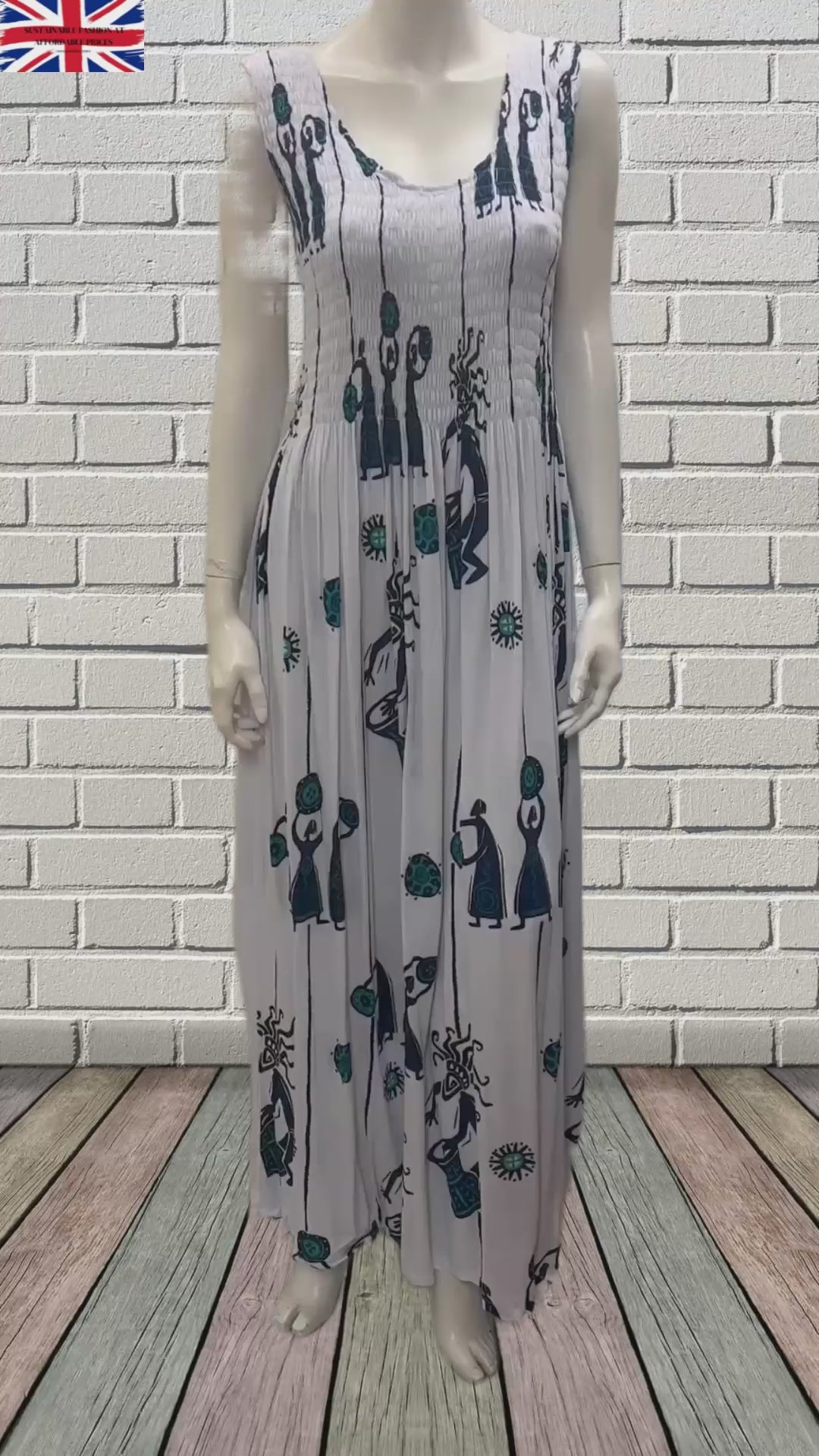 Womens Ladies Plus Size Curve Handmade Boho Abstract Print Maxi Elasticated Sleeveless Dress Free Size Up To UK Size 22 P46