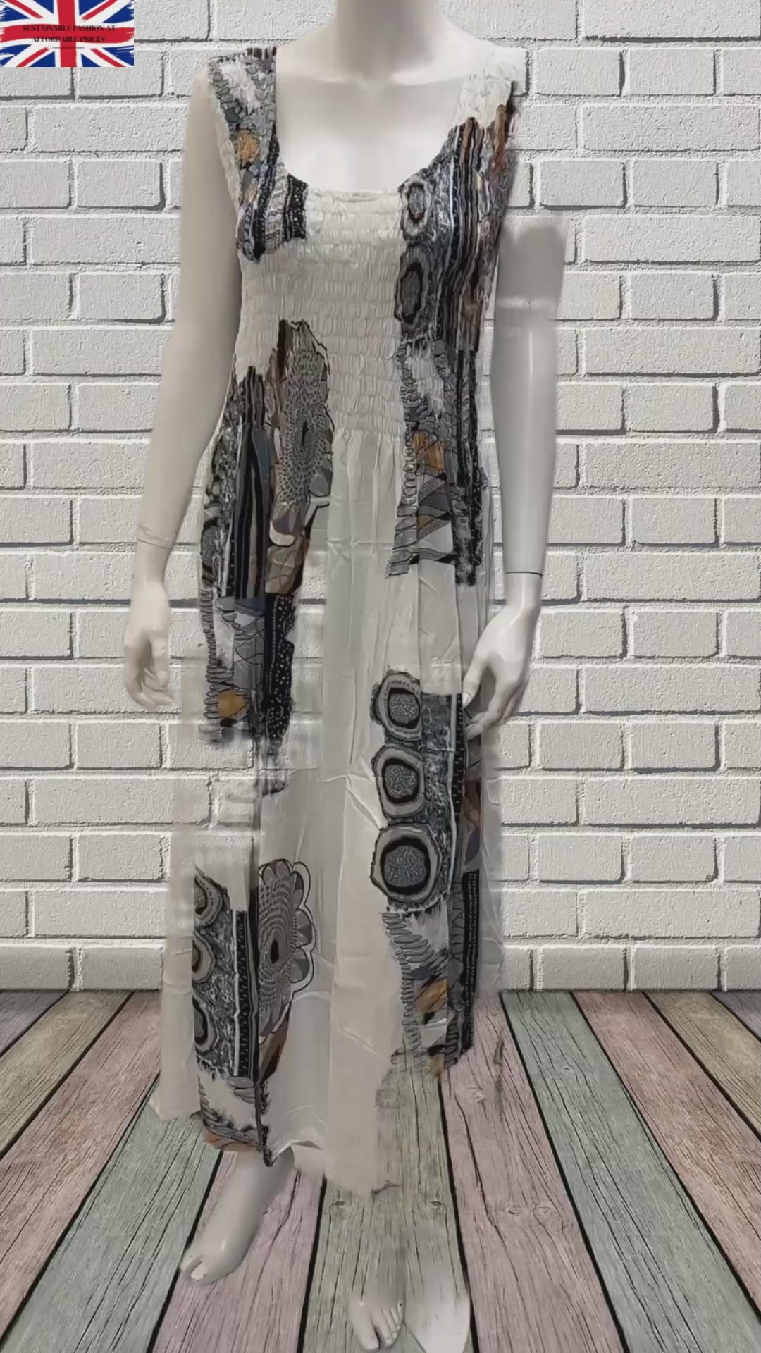 Womens Ladies Plus Size Curve Handmade Boho Abstract Print Maxi Elasticated Sleeveless Dress Free Size Up To UK Size 22 P48