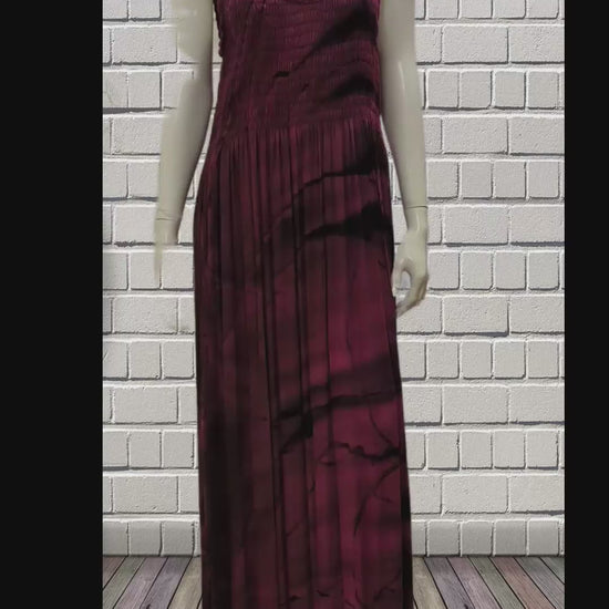 Make a statement with this bold and beautiful maxi dress. The dress features an abstract Tie Dye pattern in vibrant shades, perfect for any occasion. The dress has a Sleeveless design with a Cowl Neckline and Strappy Sleeves, giving it a sexy and bohemian vibe. At 53 inches long, the dress falls elegantly to the floor and is made from lightweight and breathable Rayon fabric. The dress is machine washable and easy to care for. The dress size is Up to UK Size 22, with a free size design that is perfect for plus-size women. This is a must-have for any fashion-conscious woman looking to add a touch of Aztec or Hippie chic to their wardrobe.