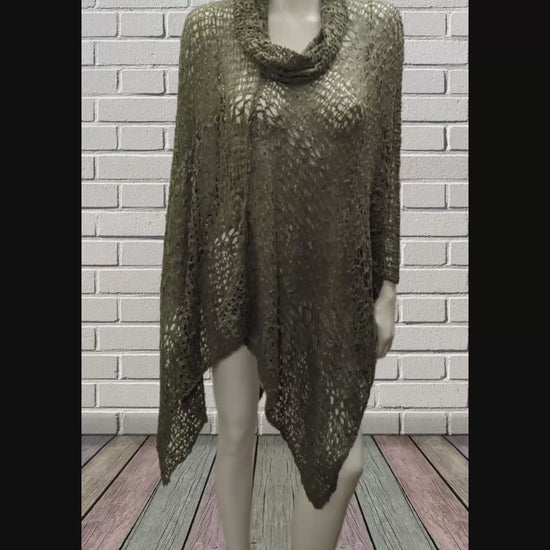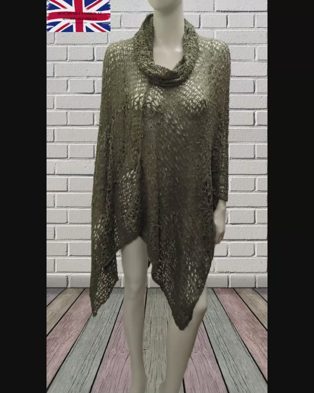 Womens Plus Size Boho Crochet Cowl Neck Knit Poncho Shawl Pullover Top Free Size 8 - 28