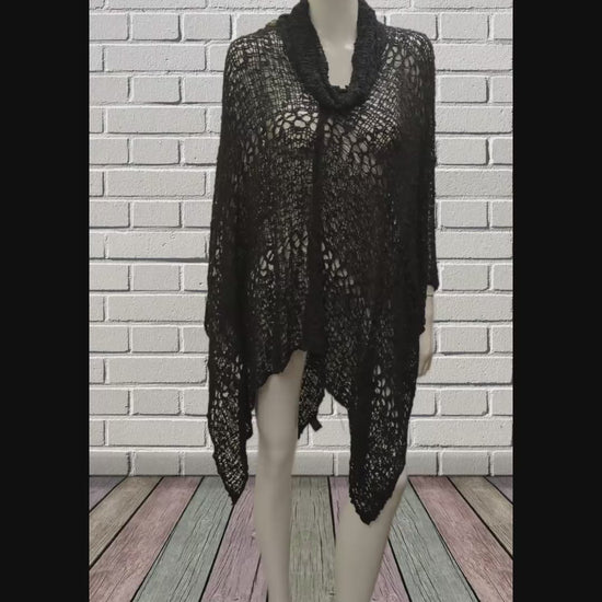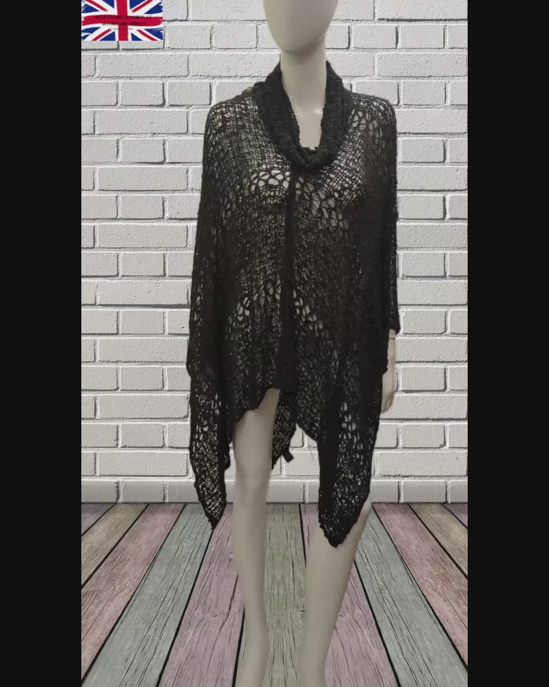 Womens Plus Size Boho Crochet Cowl Neck Knit Poncho Shawl Pullover Top Free Size 8 - 28