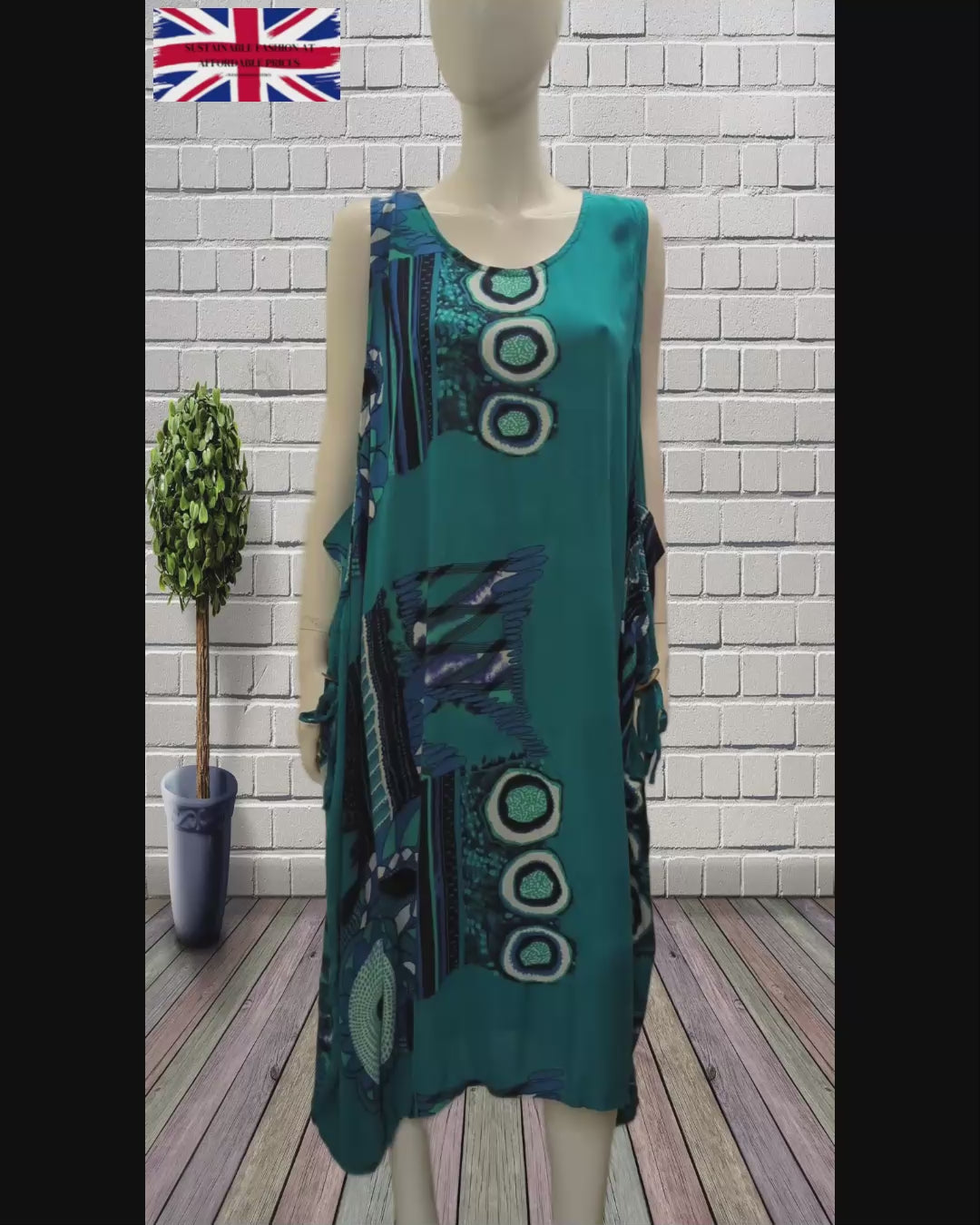 Womens Plus size Curve Dress Abstract Print Funky Bubble Pocket Maxi Free Size up to 24 - P17