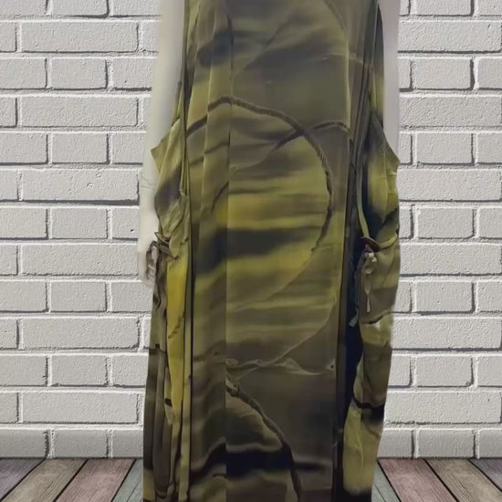 Embrace the unique and elegant style of this maxi dress. The abstract print and cowl neckline add a touch of bohemian flair, while the strapless, sleeveless design make it perfect for spring and summer occasions. This dress is made from high-quality rayon fabric, ensuring that it is comfortable and machine washable. The dress also features pockets and a free-size design, making it a perfect addition to any wardrobe. Whether you're going out for a night on the town or simply enjoying a casual day out, this dress is sure to impress.