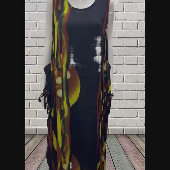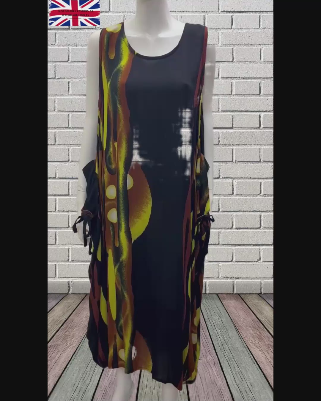 Womens Plus size Curve Dress Abstract Print Funky Bubble Pocket Maxi Free Size up to 24 - P31