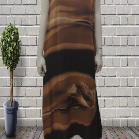 Embrace the unique and elegant style of this maxi dress. The abstract print and cowl neckline add a touch of bohemian flair, while the strapless, sleeveless design make it perfect for spring and summer occasions. This dress is made from high-quality rayon fabric, ensuring that it is comfortable and machine washable. The dress also features pockets and a free-size design, making it a perfect addition to any wardrobe. Whether you're going out for a night on the town or simply enjoying a casual day out, this dress is sure to impress.